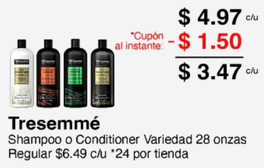 *cupón instante: tresemmé shampoo conditioner variedad onzas regular $c/u *por tienda