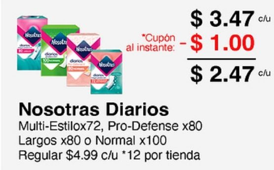 nosotr *cupón instante: -$nosotras diarios multi-estilox pro-defense xlargos normal xregular $c/u *por tienda