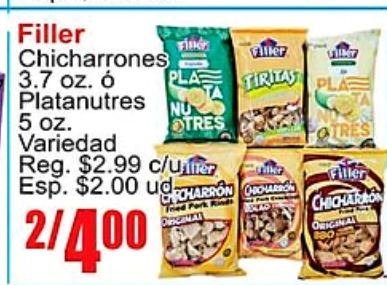 filler find chicharrones platanutres viller tiritas stres variedad reg. $c/uner esp. $udharron tiller fcharron /chicharron original