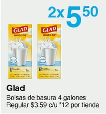 glad xlad quicktie quick small bolsas basura alones regular $c/u *por tienda