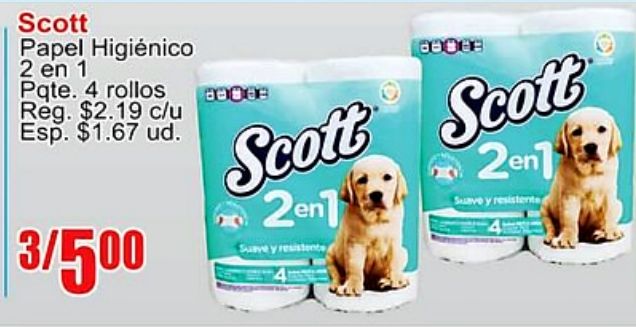 scott papel higiƩnico pqte rollos reg. $c/u esp. $ud. /scott ensuave resistente resistents