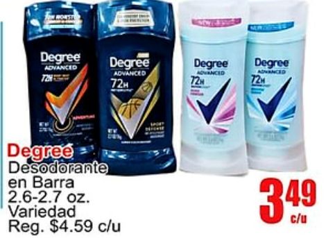 degree advanced desodorante barra variedad reg. $c/u