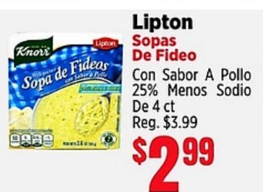 knorr lipton sopas sopa fideos fideo sabor pollo sodio