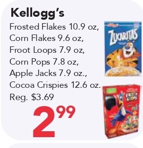 kellogg's frosted flakes corn froot loops pops apple jacks cocoa crispies reg. $zucaritas