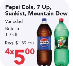 pepsi cola sunkist, mountain variedad botella reg. $c/u