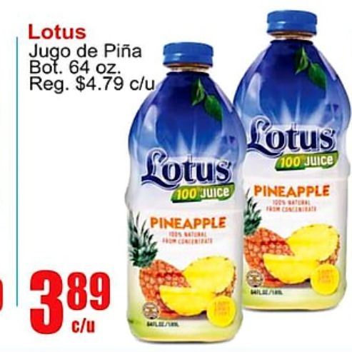 lotus jugo piƱa reg. $c/u juice pineapple fotus natural