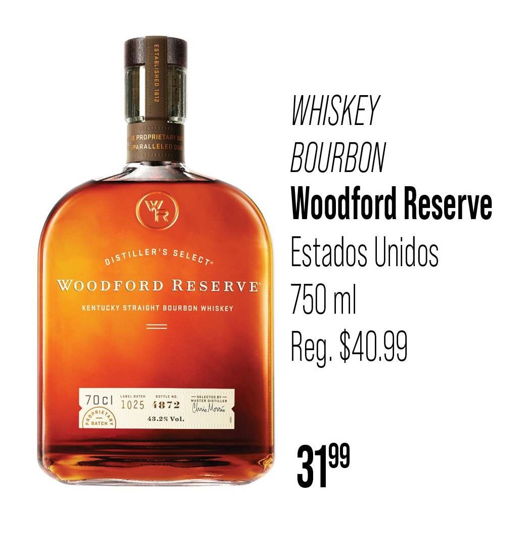 established proprietary paralleled distiller's select woodford reserve kentucky straight bourbon whiskey label batch bottle oprietar -selected master distiller chris morris unidos reg.