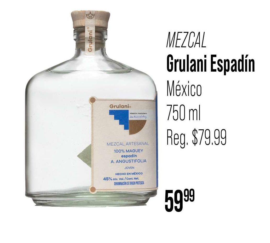 grulani grulanie maestro mezcalero hernandez mezcal artesanal maguey espadin angustifolia joven méxico alc. vol./cont. net. denominacion origen protegida espadín reg.