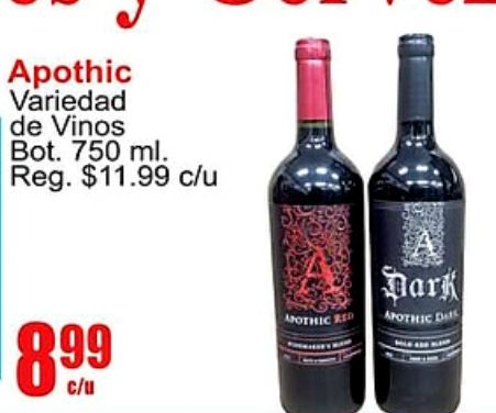 apothic variedad vinos reg. $c/u dark