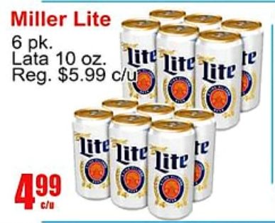 miller lite lata life reg. $c/u