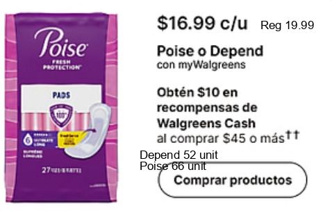 poise protection pads $c/u depend mywalgreens obtén recompensas walgreens cash comprar más⭑t unit productos