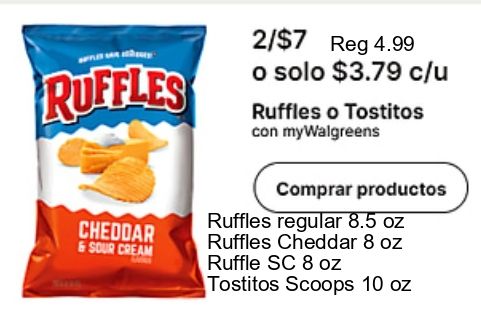 ruffles /$reg $c/u tostitos mywalgreens cheddar &sour cream comprar productos regular ruffle scoops