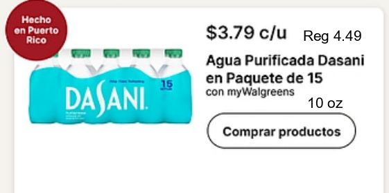 puerto rico $c/u agua purificada dasani paquete dajani mywalgreens comprar productos