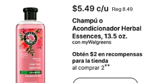 rose hips gantine shamporing $c/u champú acondicionador herbal essences mywalgreens obtén recompensas tienda comprar
