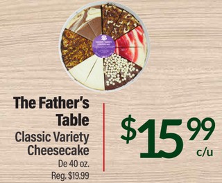 The father´s table classic variety cheesecake de 40 oz.