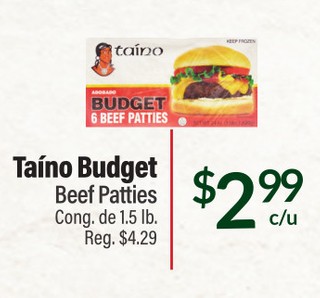 TaÃno Budget Beef Patties Cong. de 1.5 lb.
