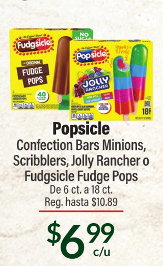 Popsicle Confection Bars Minions, Scribblers, Jolly Rancher a Fudgsicle Fudge Pops De 6 ct. a 18 ct.