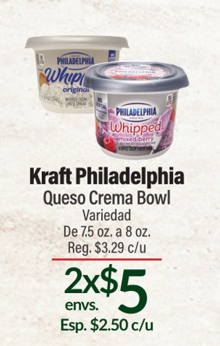 Kraft Philadelphia Queso Crema Bowl Variedad De 7.5 oz. a 8 oz.