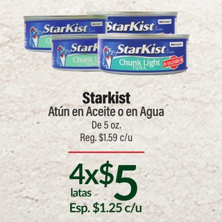 Starkist Atún en Aceite o en Agua De 5 oz.