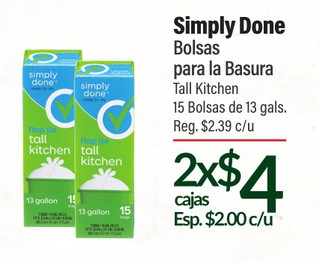 Simply done bolsas para la basura tall kitchen 15 bolsas de 13 gals.