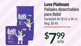Luvs platinum pañales desechables para bebe variedad de 18 ct. a 46 ct.