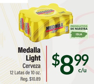 Medalla light cerveza 12 latas de 10 oz.
