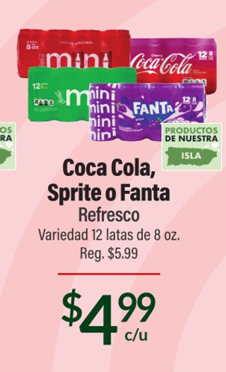 Coca cola, sprite o fanta refresco variedad 12 latas de 8 oz.