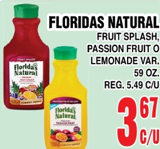 FLORIDAS NATURAL FRUIT SPLASH, PASSION FRUIT O LEMONADE VAR. 59 OZ