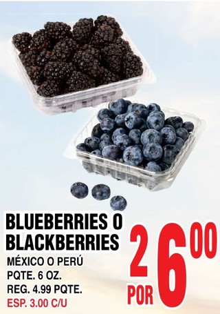 BLUEBERRIES O BLACKBERRIES MÉXICO O PERÚ PQTE. 6 OZ