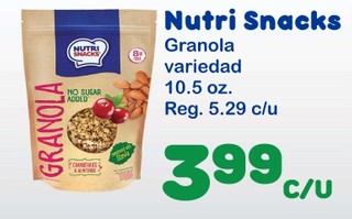 Nutri snacks granola variedad 10.5 oz.