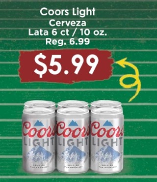 Coors light cerveza lata 6 ct / 10 oz.