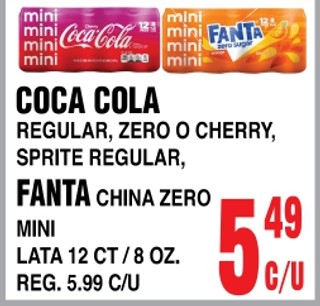 Coca cola regular, zero o cherry, sprite regular, fanta china zero mini lata 12 ct. 8 oz.