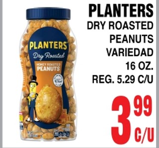 Planters dry roasted peanuts variedad 16 oz.
