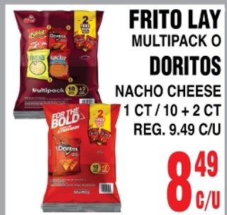 Frito lay multipack o doritos nacho cheese 1 ct, 10 + 2ct.