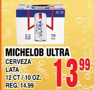Michelob ultra cerveza lata 12 ct, 10 oz.