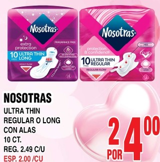 NOSOTRAS ULTRA THIN REGULAR O LONG CON ALAS 10 CT