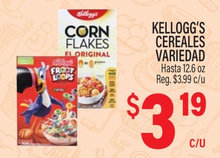 KELLOGG'S CEREALES VARIEDAD Hasta 12.6 oz