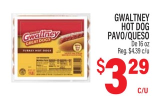 GWALTNEY HOT DOG PAVO/QUESO DE 16 OZ