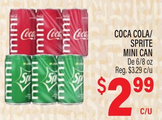 COCA COLA/ SPRITE MINI CAN De 6/8 oz.