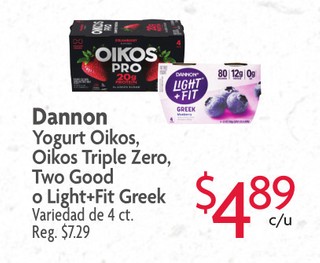 Dannon Yogurt Oikos, Oikos Triple Zero, Two Good o Light+Fit Greek Variedad de 4 ct.