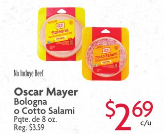 Oscar Mayer Bologna o Cotto Salami Pqte. de 8 oz.