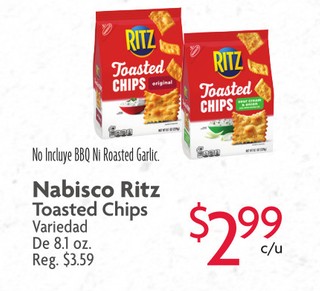 Nabisco Ritz Toasted Chips Variedad De 8.1 oz.