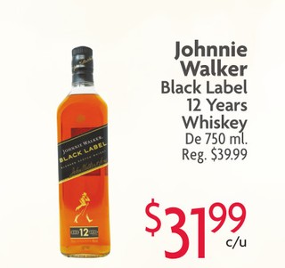 Johnnie Walker Black Label 12 Years Whiskey De 750 ml.
