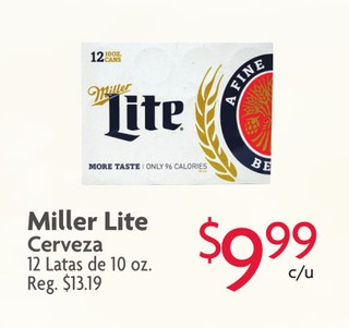 Miller Lite Cerveza 12 Latas de 10 oz.