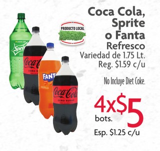 Coca Cola, Sprite o Fanta Refresco Variedad de 1.75 Lt.