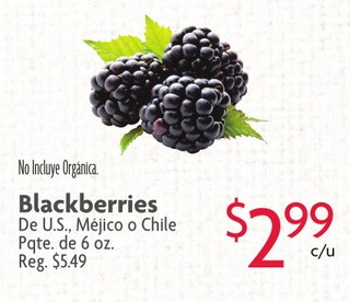 Blackberries De U.S., Mejico o Chile Pqte. de 6 oz.