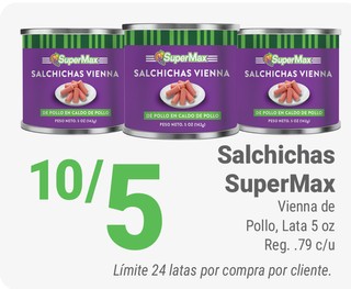 Salchichas SuperMax Vienna de Pollo, Lata 5 oz.
