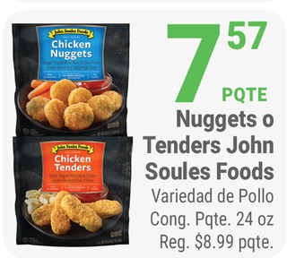 Nuggets o Tenders John Soules Foods Variedad de Pollo Cong. Pqte. 24 oz