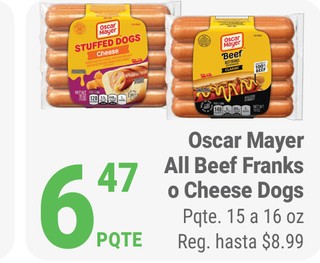 Oscar Mayer All Beef Franks o Cheese Dogs Pqte. 15 a 16 oz