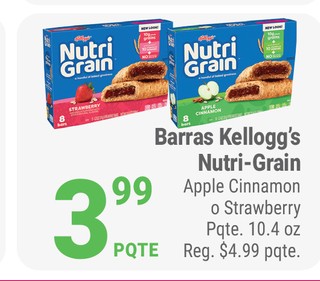 Barras Kellogg's Nutri-grain apple cinnamon o strawberry pqte. 10.4 oz.